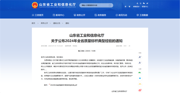 為貫徹落實《關于聚力推動工業經濟高質量發展十大行動的意見》部署要求,加快提升工業品質量品牌,加強質量支撐,推動制造業高質量發展,山東省工業和信息化廳組織開展了2024年全省質量標桿典型經驗遴選工作。