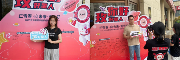 平陰總部與科創中心的巨幅簽名墻前,新員工們莊重簽下姓名,筆墨間盡顯青春抱負。科創中心特設“‘玫’好星人通行證”主題相框,新員工手持“hello,‘玫’好星人”手舉牌創意留影。鏡頭定格的一張張笑臉,成為職業生涯的珍貴扉頁。