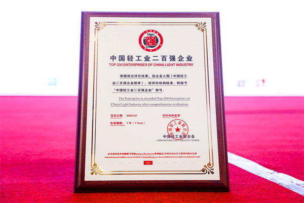 7月9日,以“聚焦向‘新’力 領航新消費”為主題的輕工業百強企業新質發展產業大會在京舉辦。大會發布了2024年度中國輕工業二百強企業名單,玫德集團榮獲“中國輕工業二百強企業”證書,位列中國輕工業百強榜第37名。