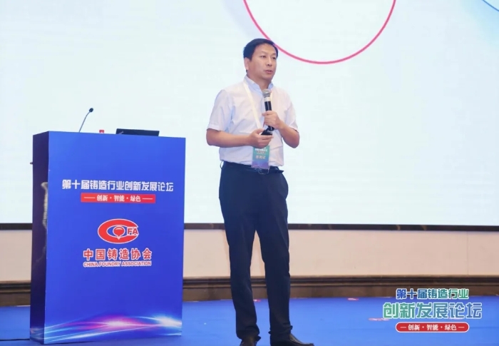 論壇上,中國鑄造協(xié)會(huì)副會(huì)長、亞洲鑄造業(yè)聯(lián)合會(huì)執(zhí)行委員、玫德集團(tuán)董事局主席孔令磊受邀發(fā)表了題為《綠色&智能—鑄造企業(yè)創(chuàng)新發(fā)展的思考與探索》的主旨報(bào)告。